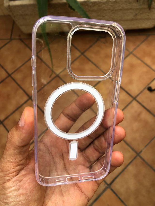 Detalles del productoFunda protectora transparente para iPhone 15 Pro.