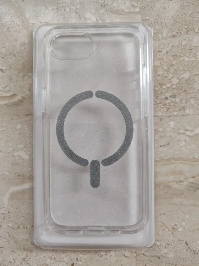Funda sparkling transparente con purpurina para iPhone 16e. Anillo magnético integrado para accesorios MagSafe. Nueva a estrenar.