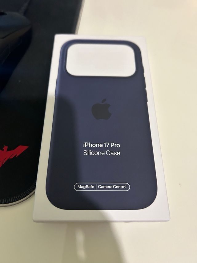 Funda oficial Apple para iPhone 17 Pro, sin abrir. - Color azul oscuro. - Material de silicona. - Compatible con MagSafe y Camera Control.