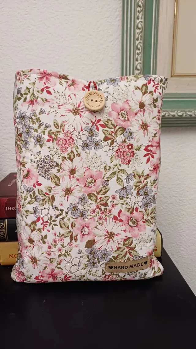Detalles del productoFunda artesanal con un bonito estampado floral, ideal para proteger libros, agendas o tu lector electrónico.