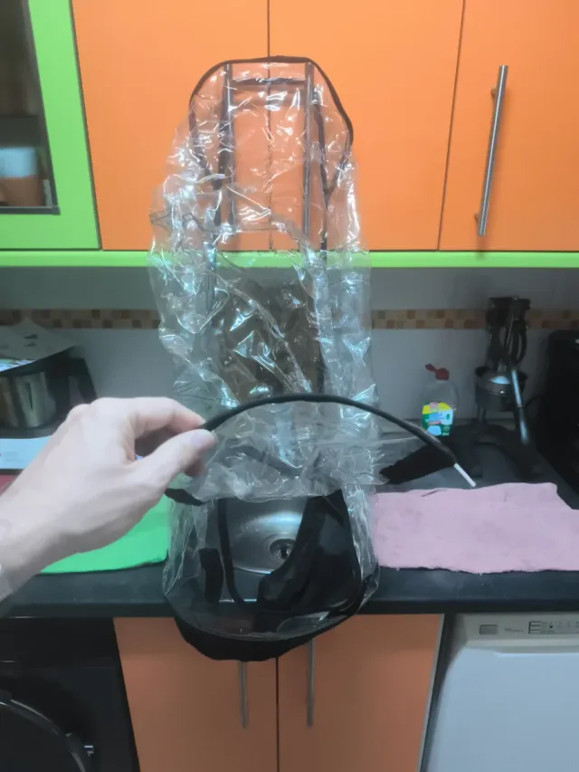 Funda de lluvia original para carrito de bebé Bugaboo. - Protege del viento y la lluvia. - Material transparente.