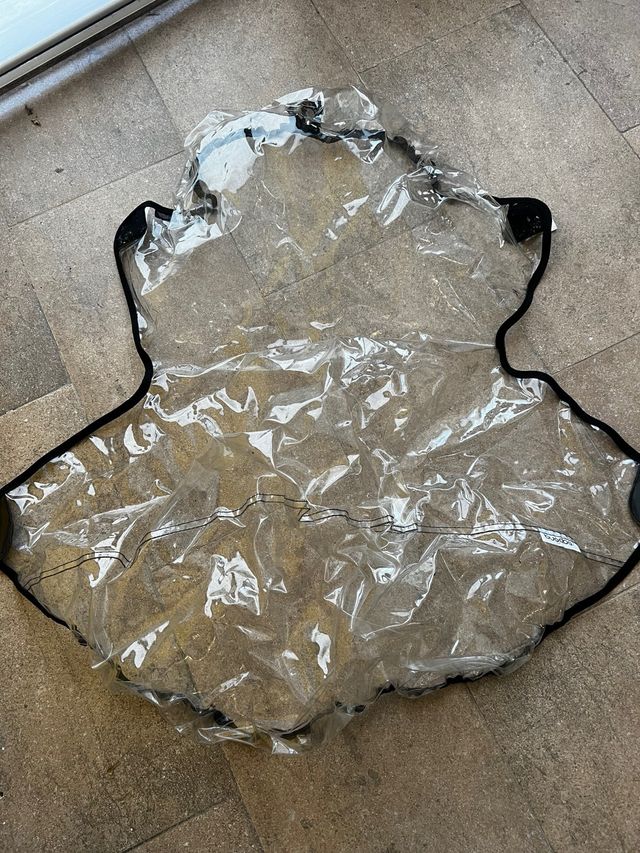 Funda protectora transparente para silla de bebé. Marca Bugaboo - Material de plástico resistente. - Borde negro. - Cierre de velcro.