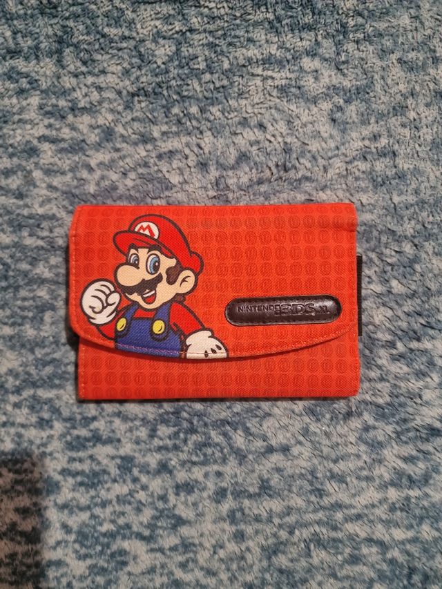 Detalles del productoFunda con diseño de Mario Bros para Nintendo 3DS XL. El exterior es de color naranja con un patrón repetitivo y el personaje de Mario.