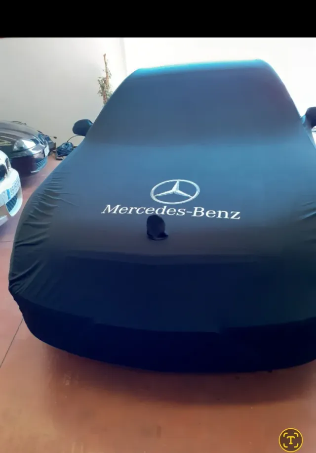 Funda protectora para Mercedes Clase C. Diseñada para cubrir el vehículo. - Color azul marino. - Logo de Mercedes-Benz en blanco.