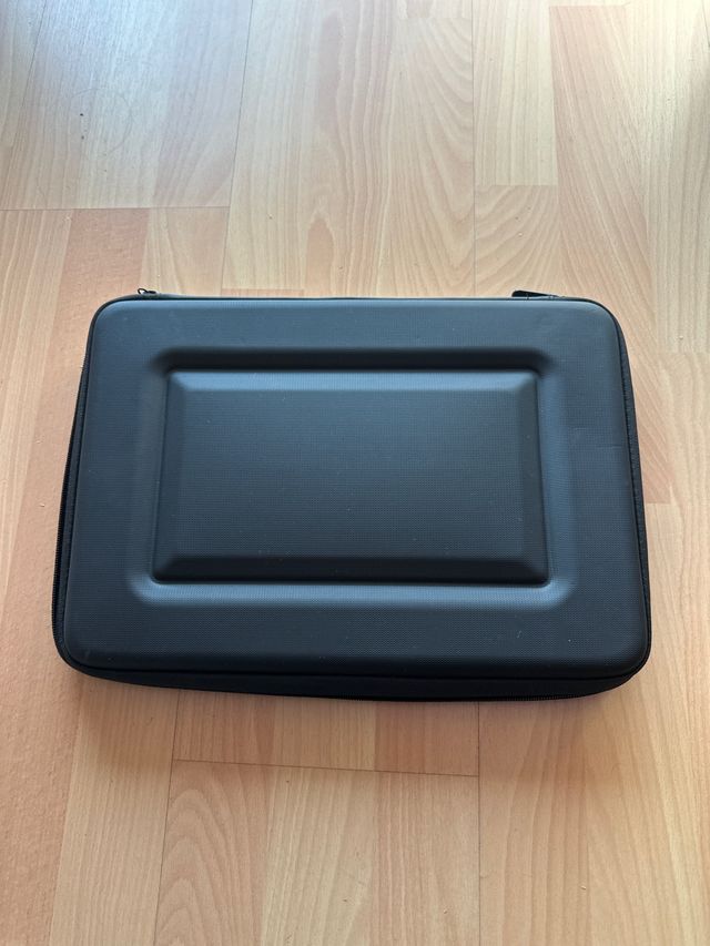 Detalles del productoFunda protectora para portátil de color negro. Diseñada para ofrecer seguridad y fácil transporte.