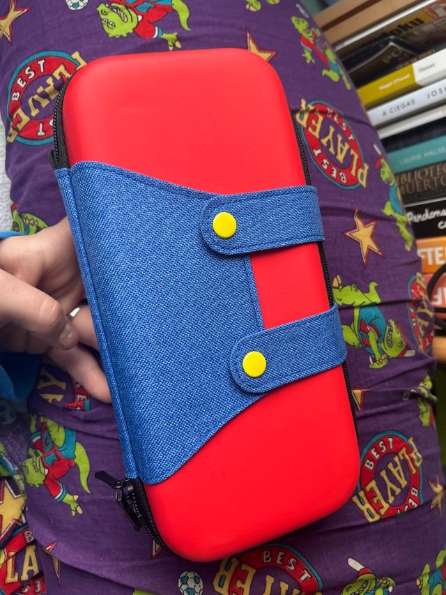 Detalles del productoFunda protectora para Nintendo Switch con diseño inspirado en Mario Bros. Es de color rojo y azul, con detalles que recuerdan a la vestimenta del personaje.