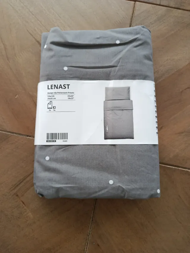 Detalles del productoFunda nórdica para cuna de IKEA, modelo LENAST. Diseño en color gris con pequeños lunares blancos.