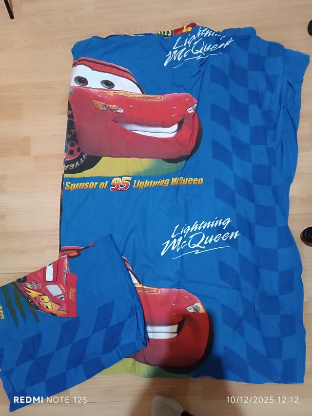 Funda nórdica infantil con el diseño de Rayo McQueen de Cars. Ideal para los fans de la película. - Diseño de Rayo McQueen. - Patrón de cuadros de carreras.