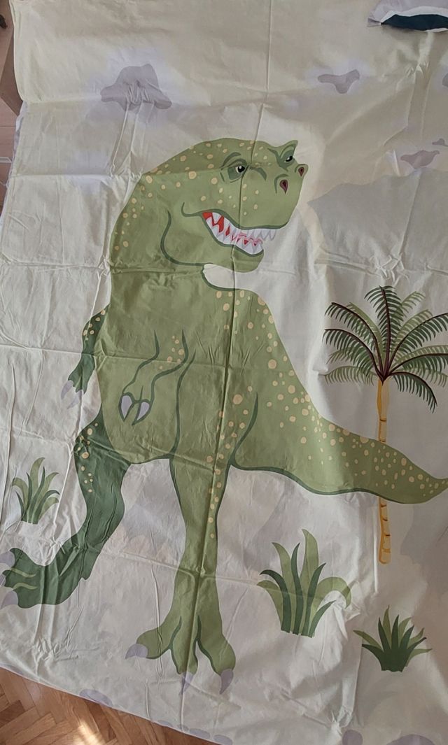 Detalles del productoFunda nórdica con un divertido diseño de dinosaurio para cama pequeña. Ideal para habitaciones infantiles.