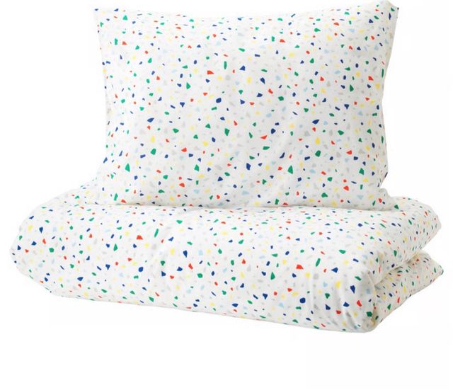 Detalles del productoJuego de funda nórdica y funda de almohada con un divertido estampado multicolor. Cama individual.
