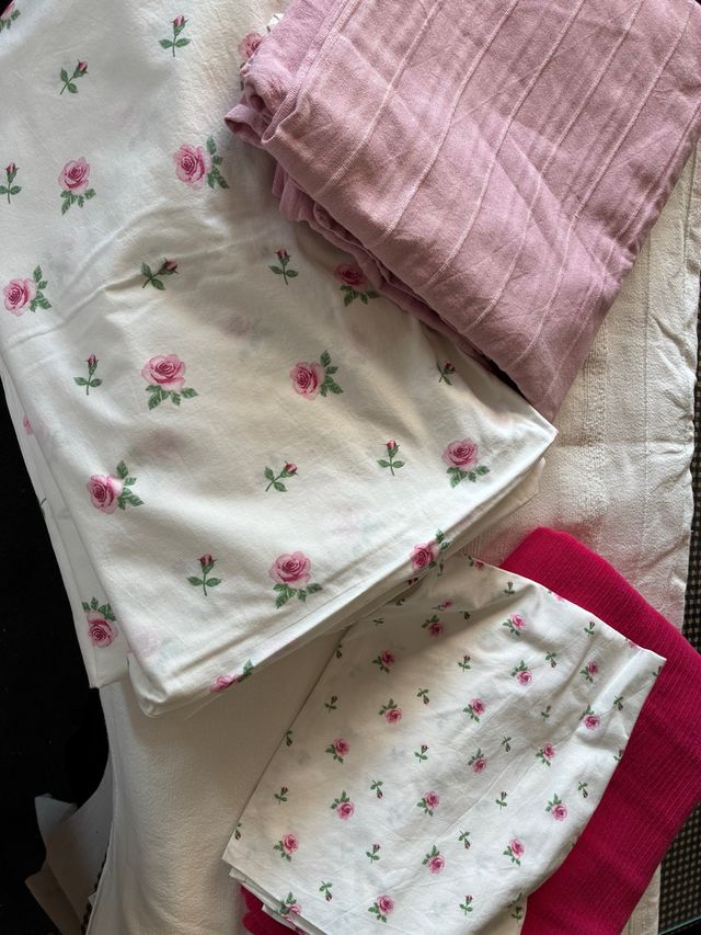 Detalles del productoConjunto de ropa de cama con estampado de rosas. Incluye funda nórdica y funda de cojín a juego, además de tres mantas.