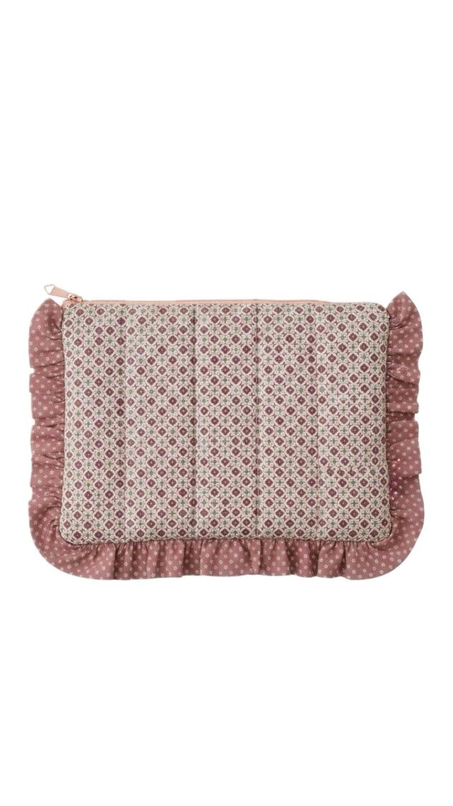Funda para ordenador portátil, elaborada artesanalmente. - Diseño acolchado. - Adorno de volantes. - Estampado floral.