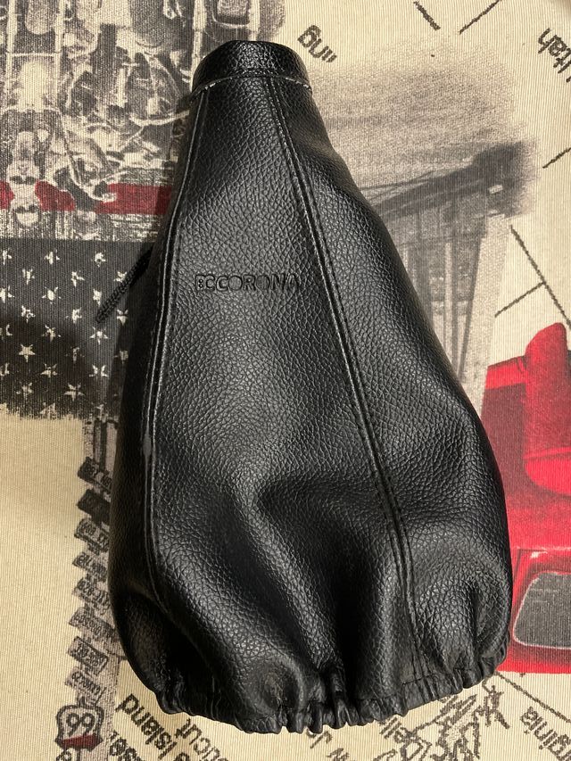 Funda para palanca de cambios de coche. - Material: Cuero sintético. - Color: Negro. - Diseño con costuras.