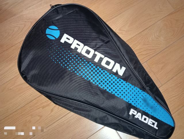 Funda o bolso para pala de pádel, cierre con cremallera, tiene un bolsillo pequeño y cinta para colgar, está en muy buen estado.