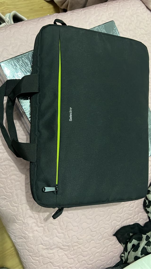 Funda protectora para ordenador portátil de la marca Selectine. - Color negro. - Cremallera frontal con detalle verde. - Asas de transporte.