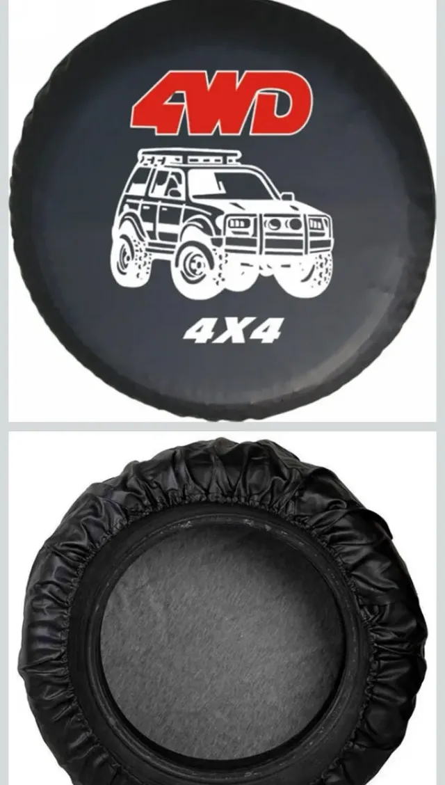 Funda protectora para rueda de repuesto de coche con diseño. - Diseño frontal con vehículo 4x4 - Color negro.