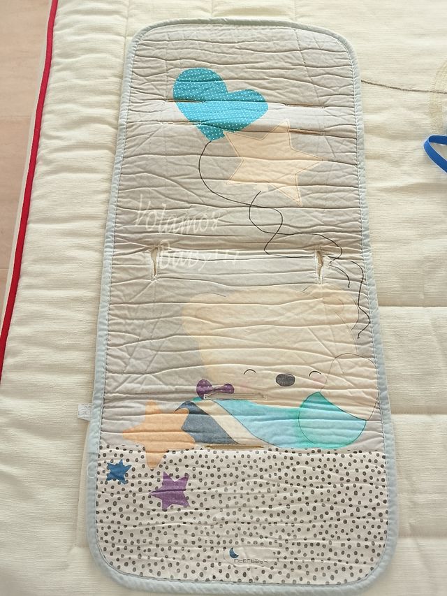 Detalles del productoFunda acolchada para silla de paseo con un tierno diseño de osito y estrellas.
