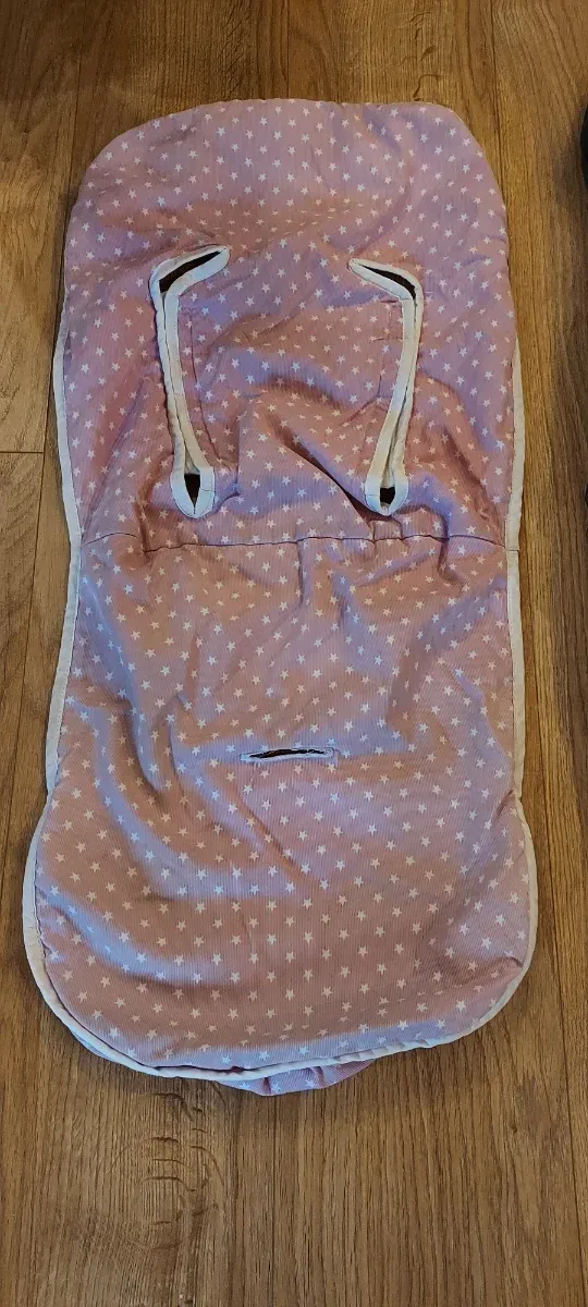 Detalles del productoFunda acolchada para silla de paseo con un bonito estampado de estrellas blancas sobre fondo rosa. Es suave y cómoda para el bebé.