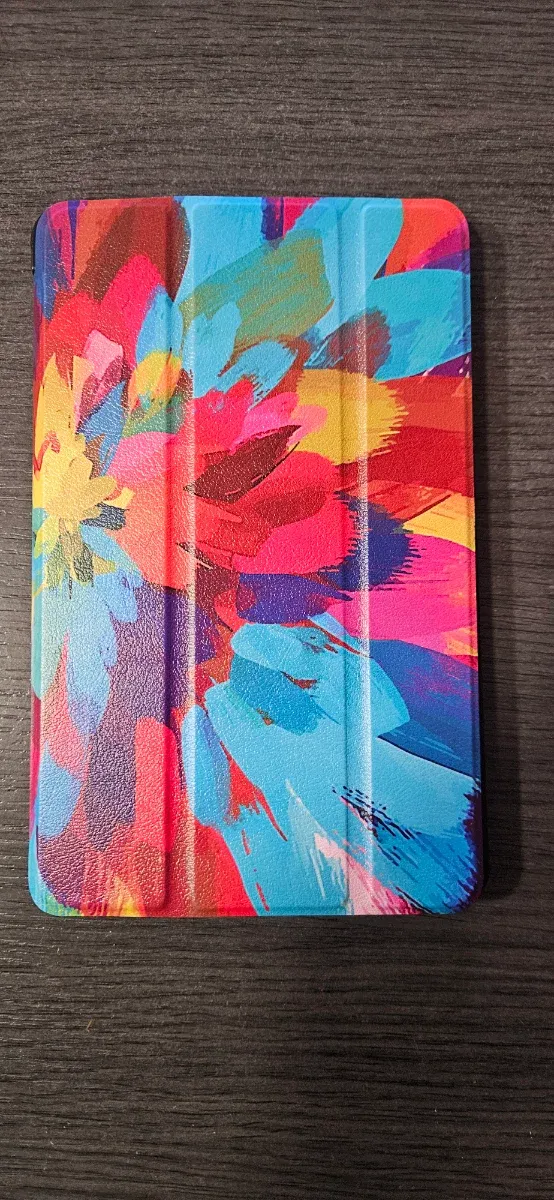 Funda protectora para tablet con un vibrante diseño abstracto. - Diseño multicolor con pinceladas. - Estilo artístico y llamativo.