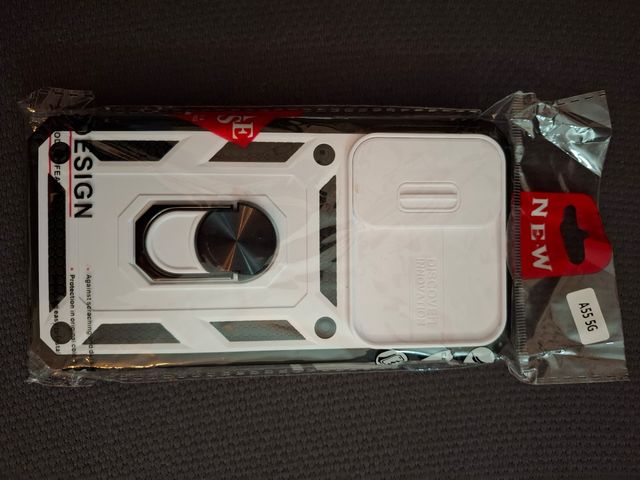 Funda de protección resistente para teléfono Samsung Galaxy A55 con cubierta para la cámara deslizante y anillo de metal magnético a prueba de golpes.