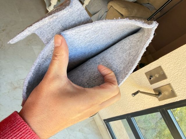- Material textil gris jaspeado.