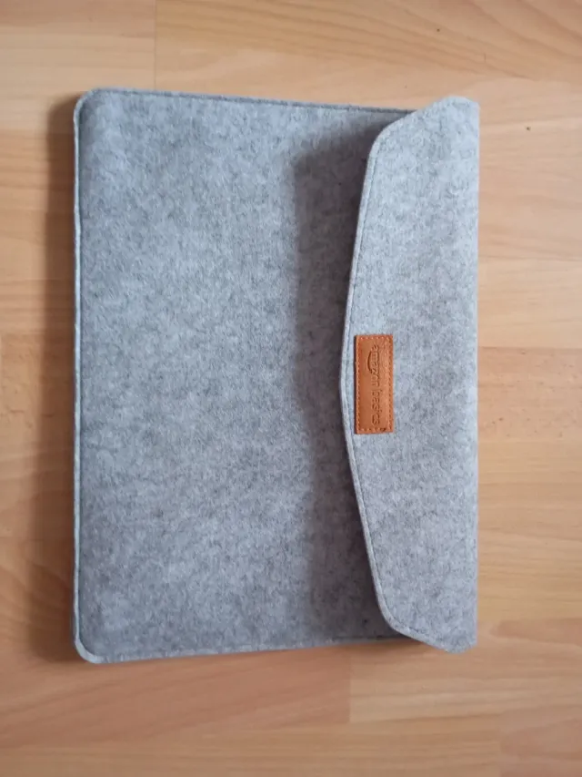 Funda protectora de fieltro gris para portátil. - Material de fieltro suave. - Diseño elegante y minimalista. - Cierre tipo solapa.