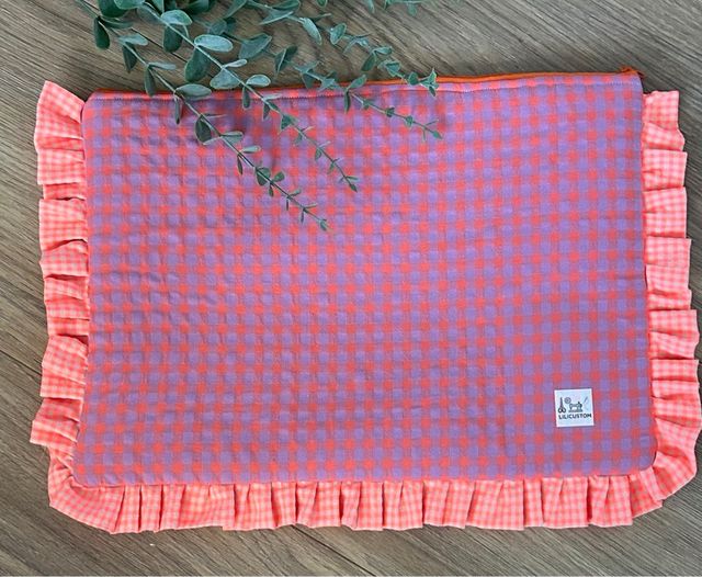 Detalles del productoFunda de ordenador sin volante; Con volante 24€; con estabilizador para proteger de los golpes. Totalmente hecha a mano.Se pueden personalizar tamaños y colores y poner el nombre por 2€ más.Es preciosa. Pongo fotos de telas que en el momento de ponerlas están disponibles, si no estuviera la que te gusta te puedo mirar las que tengo según el color que te guste.