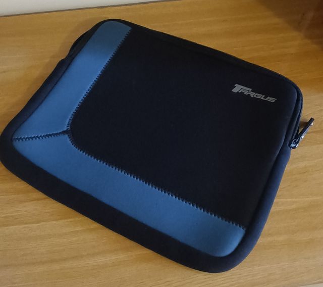 Detalles del productoFunda protectora para portátil de 13 pulgadas, negra y azul, acolchada para proteger el pc. Mide 31cm x 26cm. No se ha usado