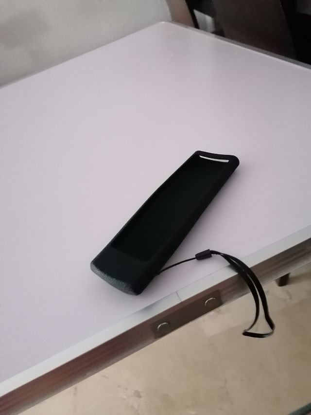 Funda protectora negra para mando a distancia de televisor medidas 15,6x4x1, 4cm. Está en perfecto estado. - Material: Silicona. - Incluye una correa.