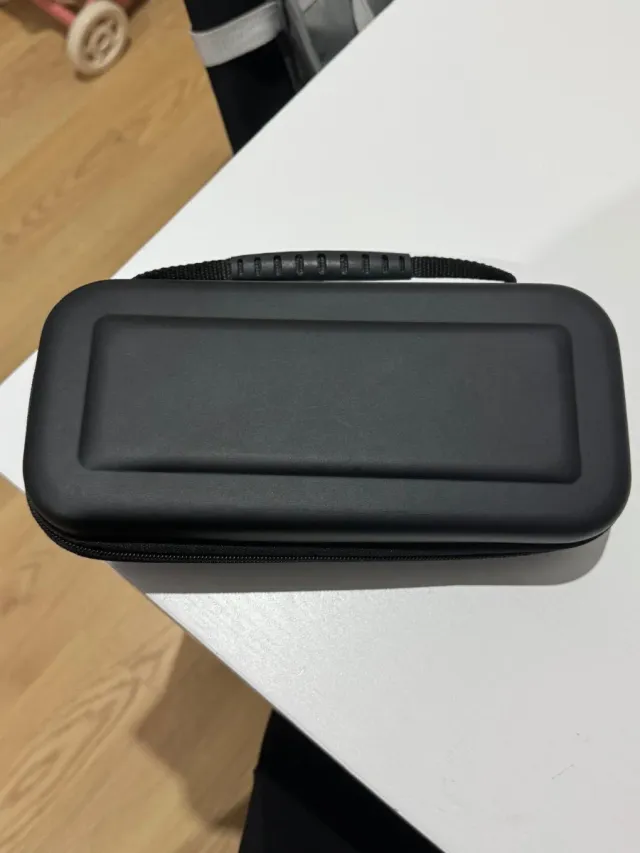 Funda rígida para proteger tu Nintendo Switch. Es compacta y fácil de llevar. - Color negro. - Cierre de cremallera. - Asa de transporte.