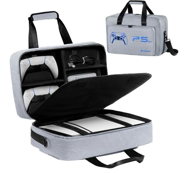 - Incluye espacio para la consola PS5 Slim, dos mandos y cables.