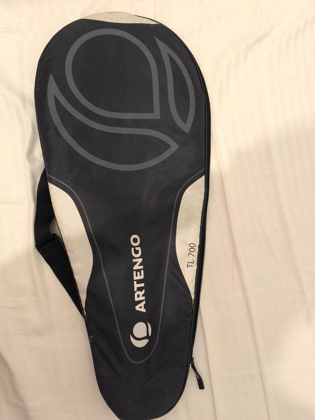 Funda para raqueta de tenis Artengo TL 700. Con correa ajustable para llevar al hombro. En buen estado, protege bien la raqueta del polvo y los golpes. Ideal para jugadores ocasionales o como funda de repuesto.