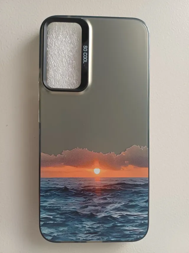 Funda para Samsung A34 con un diseño de atardecer sobre el mar. - Diseño de atardecer y olas. - Acabado brillante.