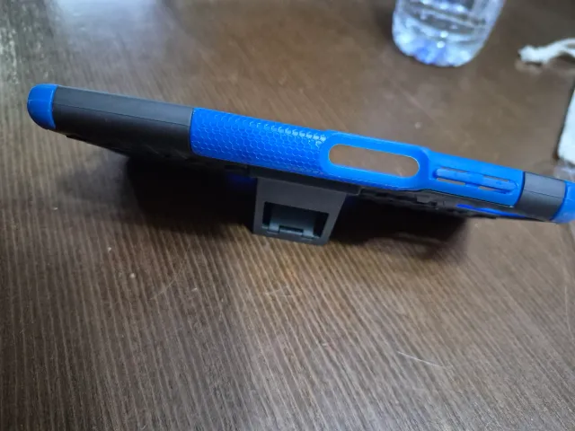 Detalles del productoFunda protectora para Samsung Galaxy A12 con un diseño bicolor en azul y negro.