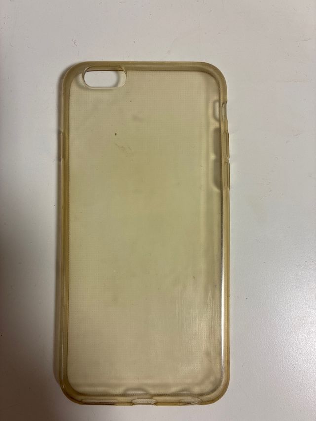 Funda protectora de silicona transparente para iPhone 6s. Ofrece una protección básica para el dispositivo. - Material: Silicona. - Color: Transparente/ámbar.