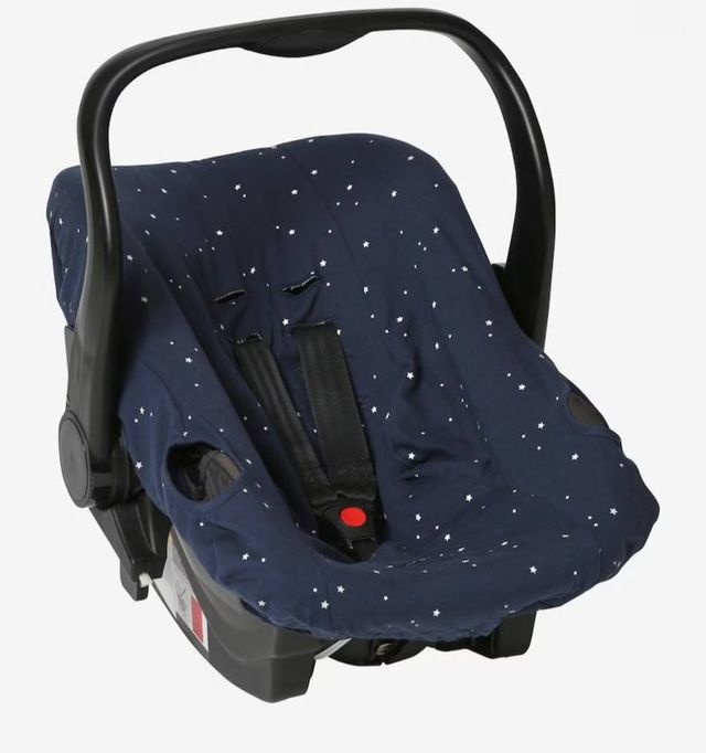 Funda silla coche- huevo elástica de color azul con estrellas.Nueva y en su bolsa. No usada . Actualmente se vende a 27.99e .Vendo más cosas infantiles y hago lotes.