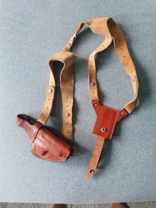 Detalles del productoFunda de cuero para llevar bajo el brazo, marca Leimann.