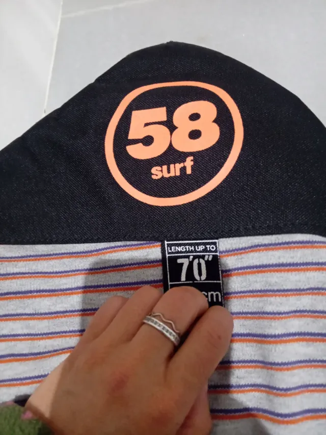 Detalles del productoFunda para tabla de surf de la marca 58 surf. Diseñada para tablas de hasta 70 pulgadas.