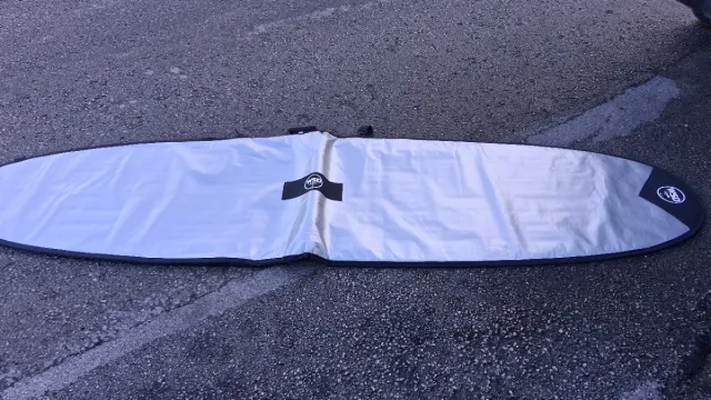 Funda para tabla de surf de 7 pies y 6 pulgadas. Protege tu tabla de golpes y del sol. - Color plateado reflectante. - Cierre con cremallera. - Logos de la marca WSD.