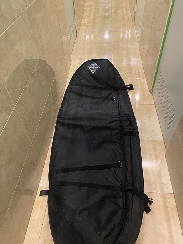Funda negra para tabla de surf, ideal para viajes. - Material resistente. - Cierre con cremallera. - Asas de transporte. NO HAGO ENVIOS