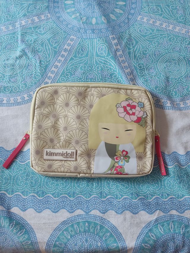 Detalles del productoPreciosa funda para tablet de la marca kimmidoll. Es de color beige claro con un diseño de kokeshi.