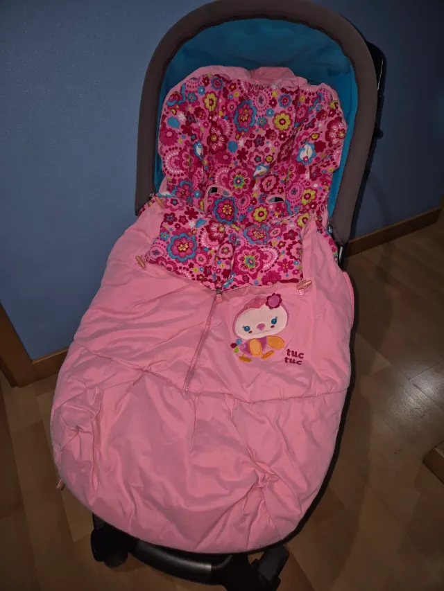 Detalles del productoFunda universal para carrito de bebé o sillas ligeras de la marca Tuc Tuc. Diseño alegre y colorido.