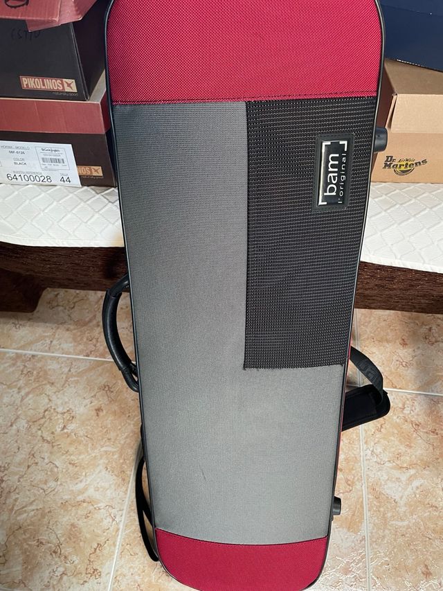 Funda para violín 4/4 de la marca Bam. - Diseño moderno en color rojo y gris. - Logo bam l'original visible.