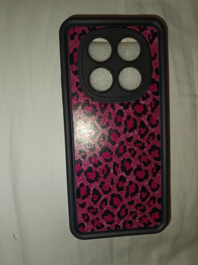 Detalles del productoFunda protectora con diseño de leopardo en color rosa y negro para tu móvil.