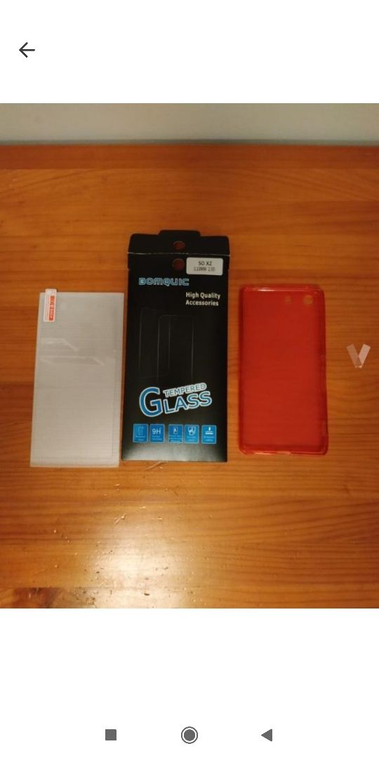 Funda roja de silicona y cristal templado para SONY XPERIA M5. Nuevos.
