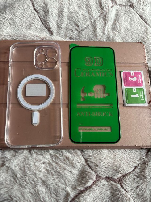 funda +protector ceramico de pantalla para iphone 13 pro max/14plus/6.7 nuevo. Color trasparente.