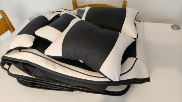 Juego de fundas para asientos de coche de cuero. - Diseño moderno en blanco y negro. - Material de cuero. - Ajuste universal.