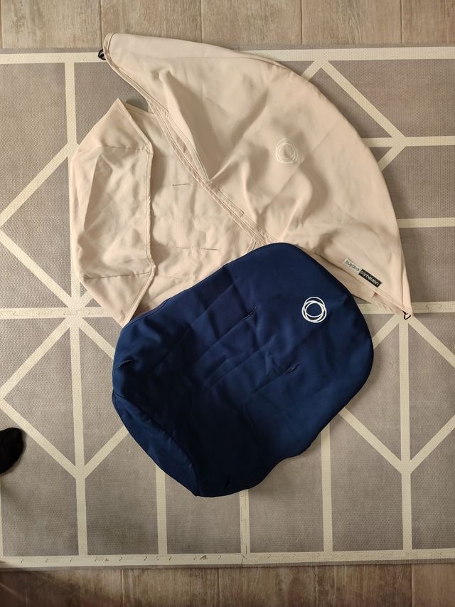 Detalles del productoVendo fundas para silla de paseo Bugaboo. Incluye una funda para el asiento en azul marino y otra en beige, además de una capota a juego en beige. Las fundas están en buen estado y son perfectas para proteger y renovar la silla.
