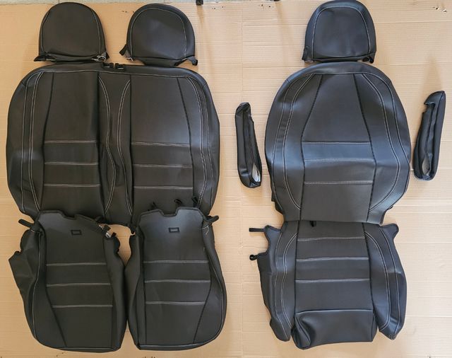 Detalles del productoFundas de asientos a medida para volkswagen cafter 2022. Polipiel negra, costuras blancas. 3 plazas. También las hacemos a tu gusto para cualquier marca y modelo. Más información 609 88 44 85