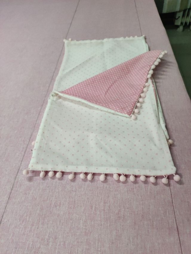 Detalles del productoFundas de cojín reversible con madroños . blanco con topitos en rosa y rosa con lunares blancos se vende juntos o por separado Medidas del producto